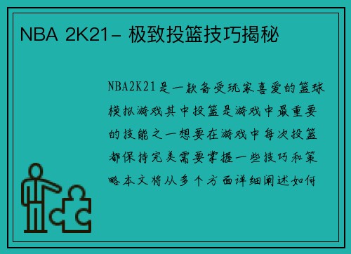 立即咨询NBA 2K21是一款备受玩家喜爱的篮球模拟游戏,其中投篮是游戏中最重要的技能之一。想要在游戏中每次投篮都保持完美,需要掌握一些技巧和策略。本文将从多个方面详细阐述如何在NBA 2K21中实现每次投篮的完美表现。